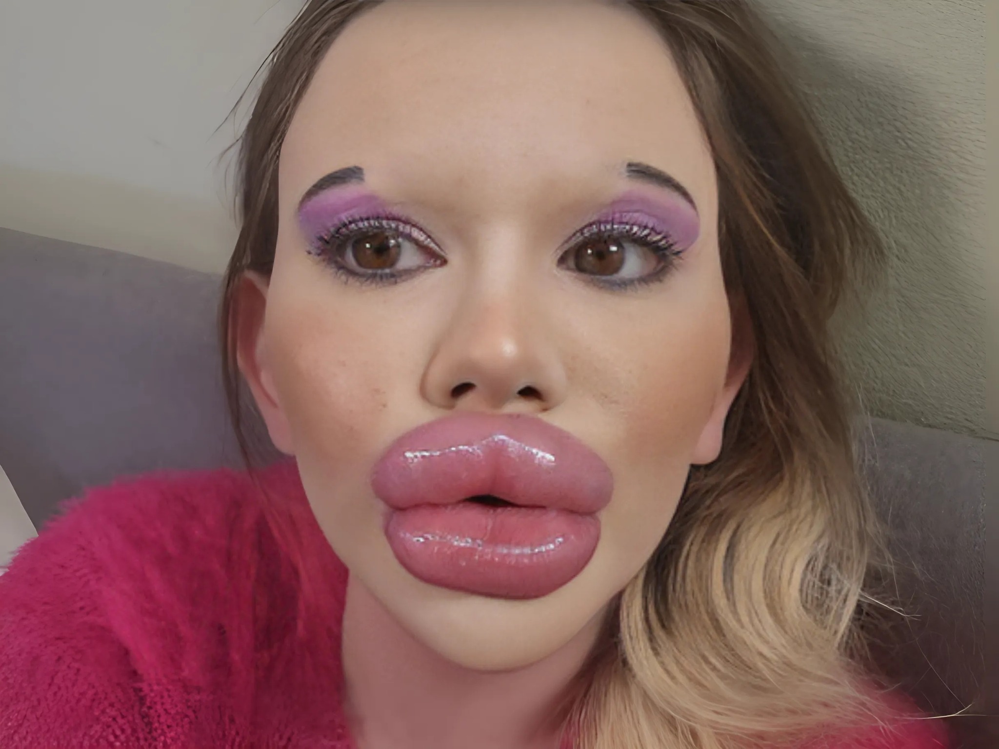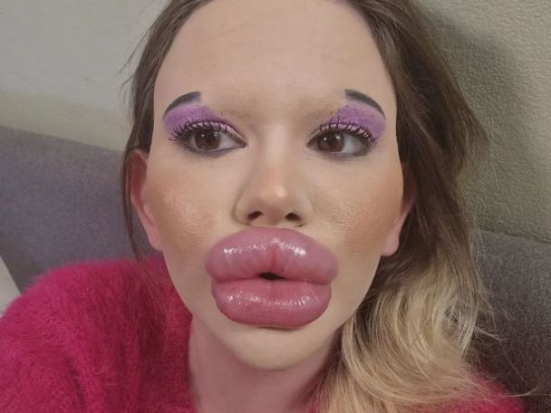 Bu kız, dudaklarını şişirmek için yaklaşık on bin dolar harcamak zorunda kaldı, çünkü her seferinde sonuçtan memnun kalmıyordu ve yüzünde o kadar çok dolgu maddesi olmasını istiyordu ki, bakıldığında onun bir oyuncak bebek olduğu hemen anlaşılsın. Dudaklarını ideal boyuta ulaştırdıktan sonra, elmacık kemiklerine de dolgu maddesi ekleyerek onları da biraz büyütmeye karar verdi.