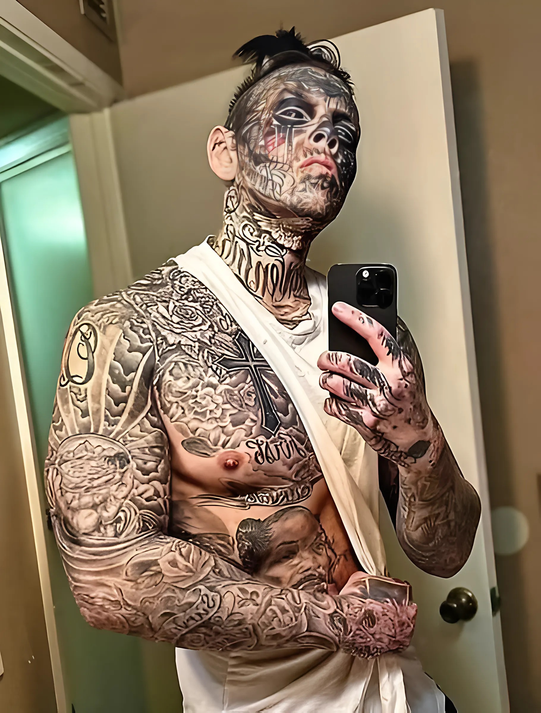İlk dövmelerinin ardından, vücudunda tam bir dövme kataloğu oluşmuş. Hatta dövme sanatçısına gözlerinin her tarafına iğne batırmasını ve gözlerini siyah yapmasını bile istemiş.