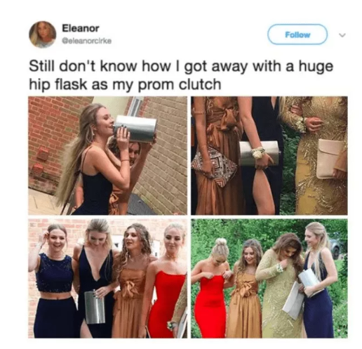 Şimdi kıyafetinin altında bir matarayı ustaca gizleyen lise öğrencisine bak. Küçük çantasını öyle bir şekilde değiştirmiş ki aslında çanta değilmiş gibi görünmüyor. Elbette öğretmenler bu detayı fark etmedi, bu yüzden şık mezuna hiçbir şey söylemediler. Gerçeği öğrendiğine göre, şimdi matarayı hemen fark ediyorsun, değil mi?