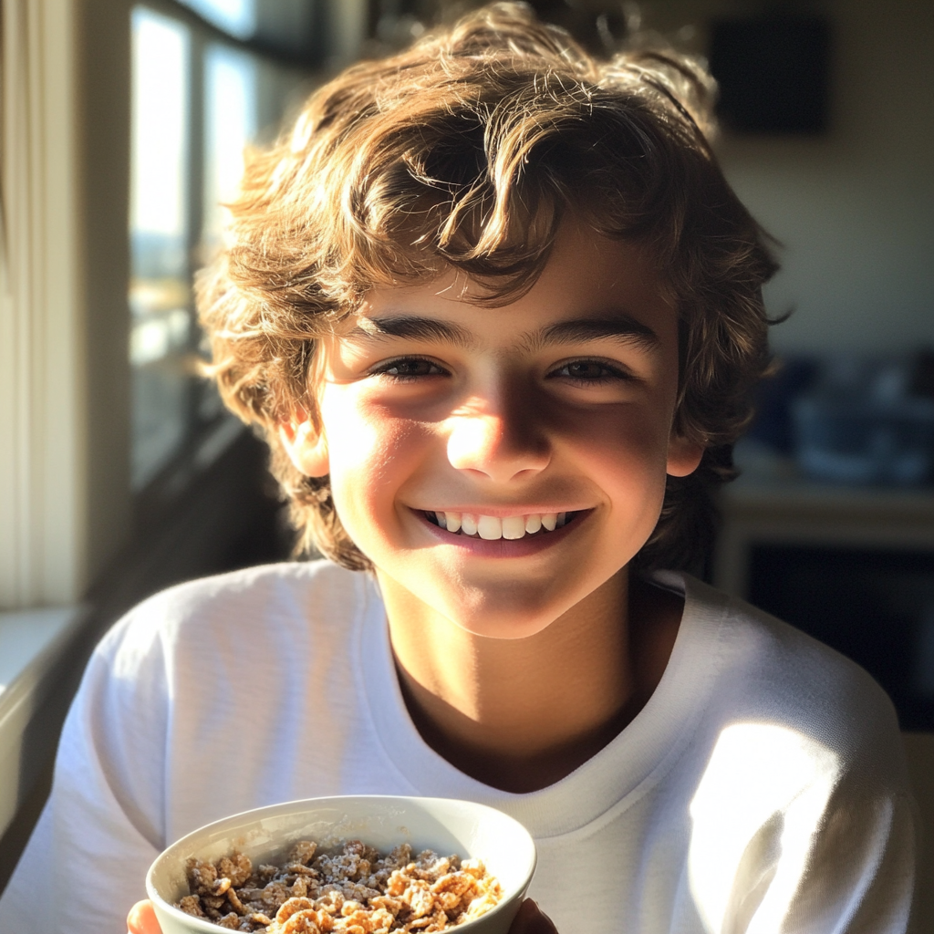 Oğlum gülümsedi.