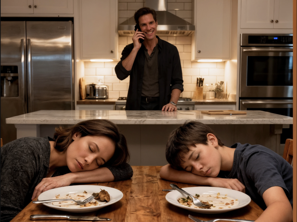 Kocam akşam yemeğini hazırladı ve ben oğlumla yemeği yer yemez bayıldık. Ben bayılmış numarası yaparken